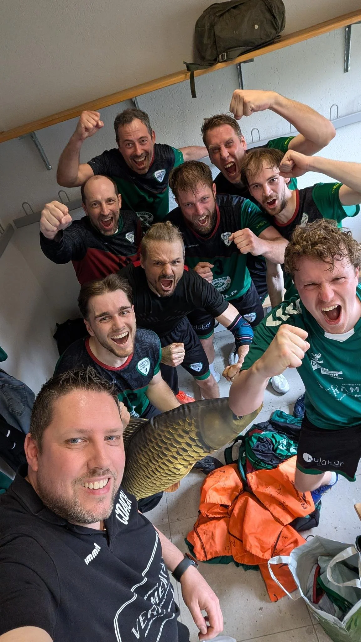 Ganze neun tapfere Karpfen inklusive Coach Adrian haben vergangenen Samstag Mittag den Weg nach Talheim zum Tabellenzweiten, der Drittbesetzung des HSG Baar, gefunden. Die Stimmung war gut, denn es war klar, gegen den Tabellenzweiten kann man eigentlich nichts verlieren, nur gewinnen. Entsprechend fiel auch die Kabinenrede von Coach Adrian vor Spielbeginn vorsichtig optimistisch aus: "Wir haben keine Chance, und genau die nutzen wir" hieß es.